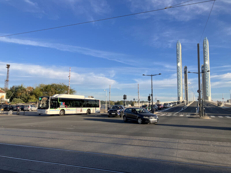Bordeaux – Pont Chaban-Delmas – 18 janvier 2025 – Bientôt le tramway sur le pont à tablier levant ? L’amorce d’une rocade plus structurante qu’une ligne de bus améliorée, coordonnée avec le SERM, aurait un effet très bénéfique, y compris pour le réseau central de tramways. (Cliché Quai numéro 2)