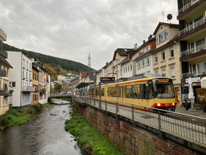 Le tram-train de Karlsruhe a provoqué dans les années 1990 et 2000 une véritable frénésie, en le présentant comme la solution pour le transport périurbain autour des grandes agglomérations françaises. Si la mise en service de la première ligne circulant sur le réseau urbain puis sur le réseau ferroviaire remonte à 1992, l’usage de tramways hors la ville a débuté en 1957 avec l’Albtal-Verkehrs-Gesellschaft (AVG), modernisant une ligne de chemin de fer menacée de disparition. En 1961, les travaux de conversion à l’exploitation par tramways sous la réglementation urbaine du BOStrab étaient achevés jusqu’Ettlingen. L’Albtalbahnhof n’était plus un terminus, les tramways pénétrant directement dans le centre de Karlsruhe, facilitant le trajet pour les voyageurs. Devant le succès de la nouvelle exploitation, les sections Ettlingen – Bad Herrenalb et Busenbach – Ittersbach ont également été converties au tramway entre 1966 et 1975.