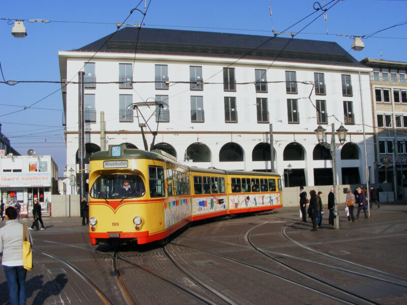 Lourdement endommagé par la seconde guerre mondiale, le réseau de tramways de Karlsruhe avait été reconstitué a minima, avec une image désuète face à l’automobile. Le renouvellement du matériel à partir de 1959 et la création de nouvelles sections pour desservir les quartiers récemment construits avaient amorcé le regain d’intérêt pour les transports publics.