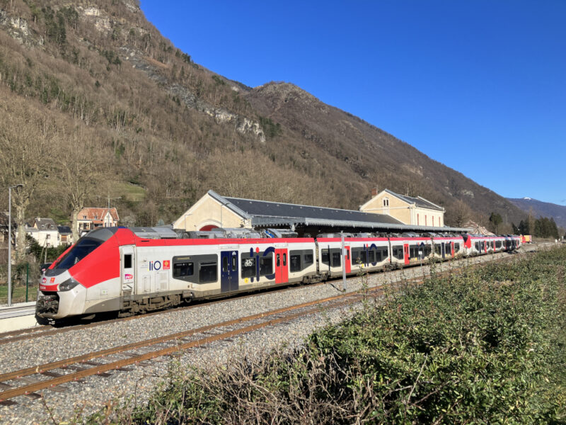 Bagnères-de-Luchon – 1er mars 2026 – La gare ne dispose plus que d’une seule voie pour le service voyageurs. Les 2 Régiolis engagée en ce dimanche auront pour mission de redescendre dans les citadins venus profiter des domaines skiables avec les forfaits Skirail. (Cliché Quai numéro 2)