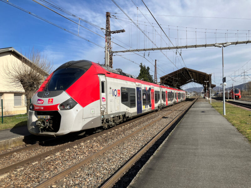 La desserte régionale en Occitanie est principalement assurée en Régiolis : les performances sont correctes, mais la capacité devient un peu trop juste avec 228 places par rame du fait d’une configuration à 6 portes sur des éléments à 4 caisses. Même les unités multiples peuvent s’avérer trop juste, surtout à partir de Boussens. La Région engage donc aussi des Régio2N, même sur les liaisons vers Tarbes : plus capacitaires, leur confort reste, comme dans les autres Régions, assez médiocre du fait d’un siège trop raide… mais celui du Régiolis n’est pas meilleur. C’est la confirmation d’une lacune dans la définition de la desserte et du matériel roulant entre le « régional » et le « Regio Express ».